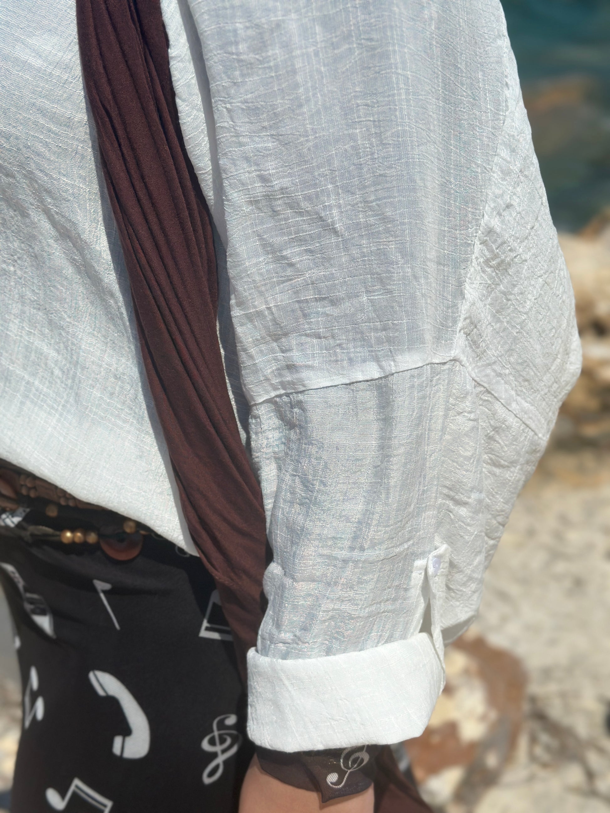 ارتاحي بإطلالة ناعمة وأنيقة مع القميص الأبيض الواسع من خامة الكتان الطبيعية. تصميم مريح بستايل واسع يديك إحساس بالانتعاش، وخامة خفيفة ومناسبة لأجواء الصيف. قطعة أساسية تناسب كل الأوقات بإحساس بسيط وراقي.
