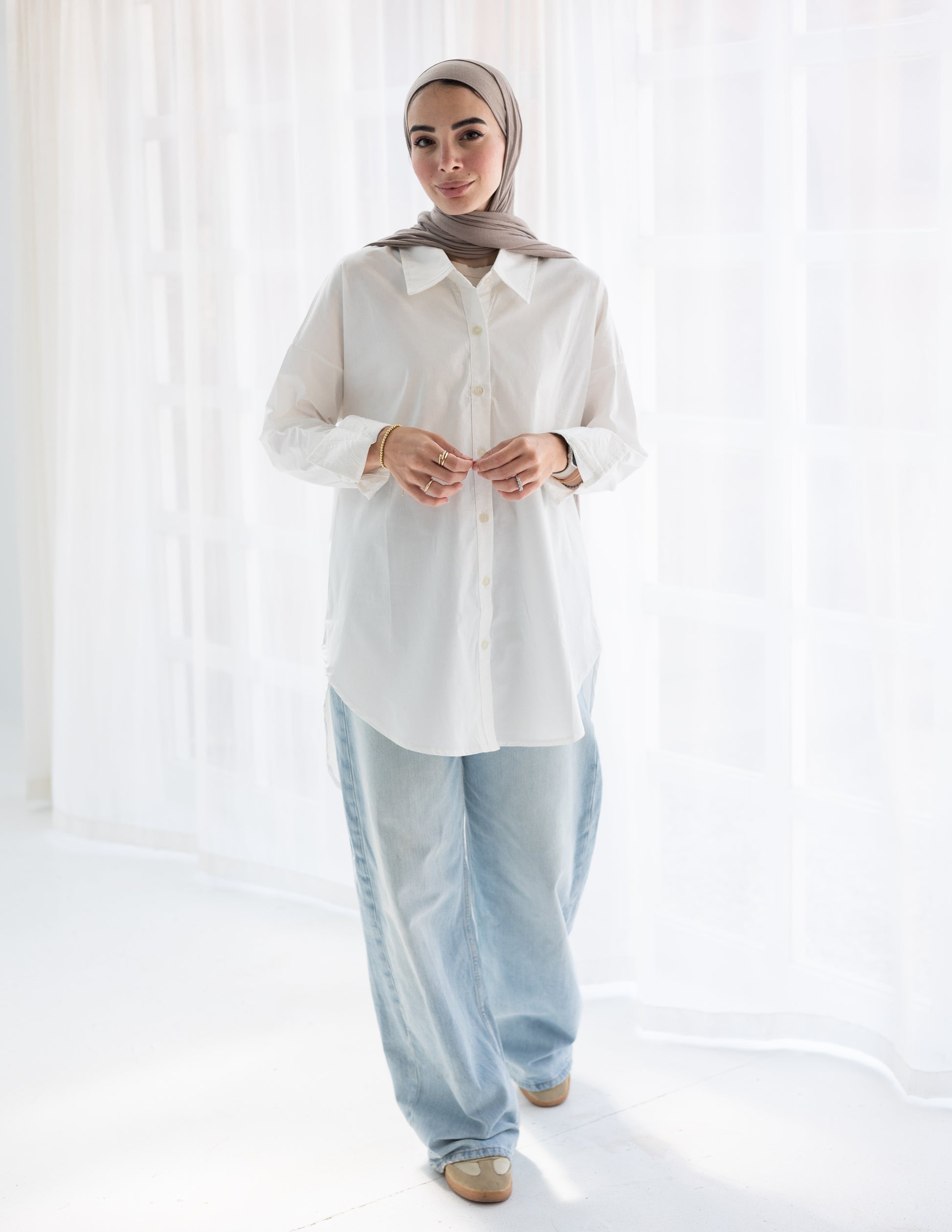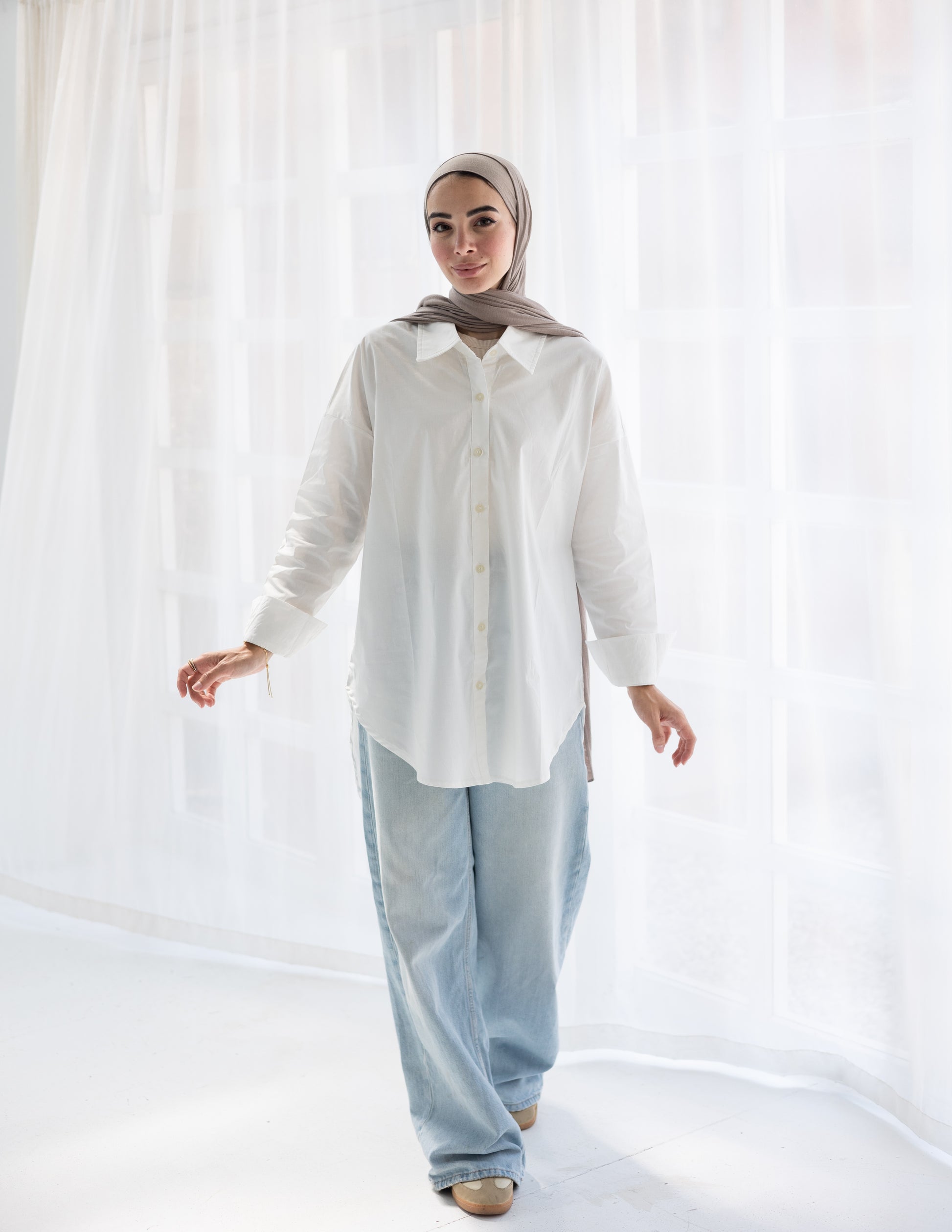 This White 100% Cotton Poplin Shirt is a must-have for any wardrobe. Made from high-quality cotton poplin, it's lightweight, breathable, and perfect for any occasion. Whether you're dressing up for a special event or keeping it casual for a day out, this shirt is a versatile choice that will keep you looking and feeling great