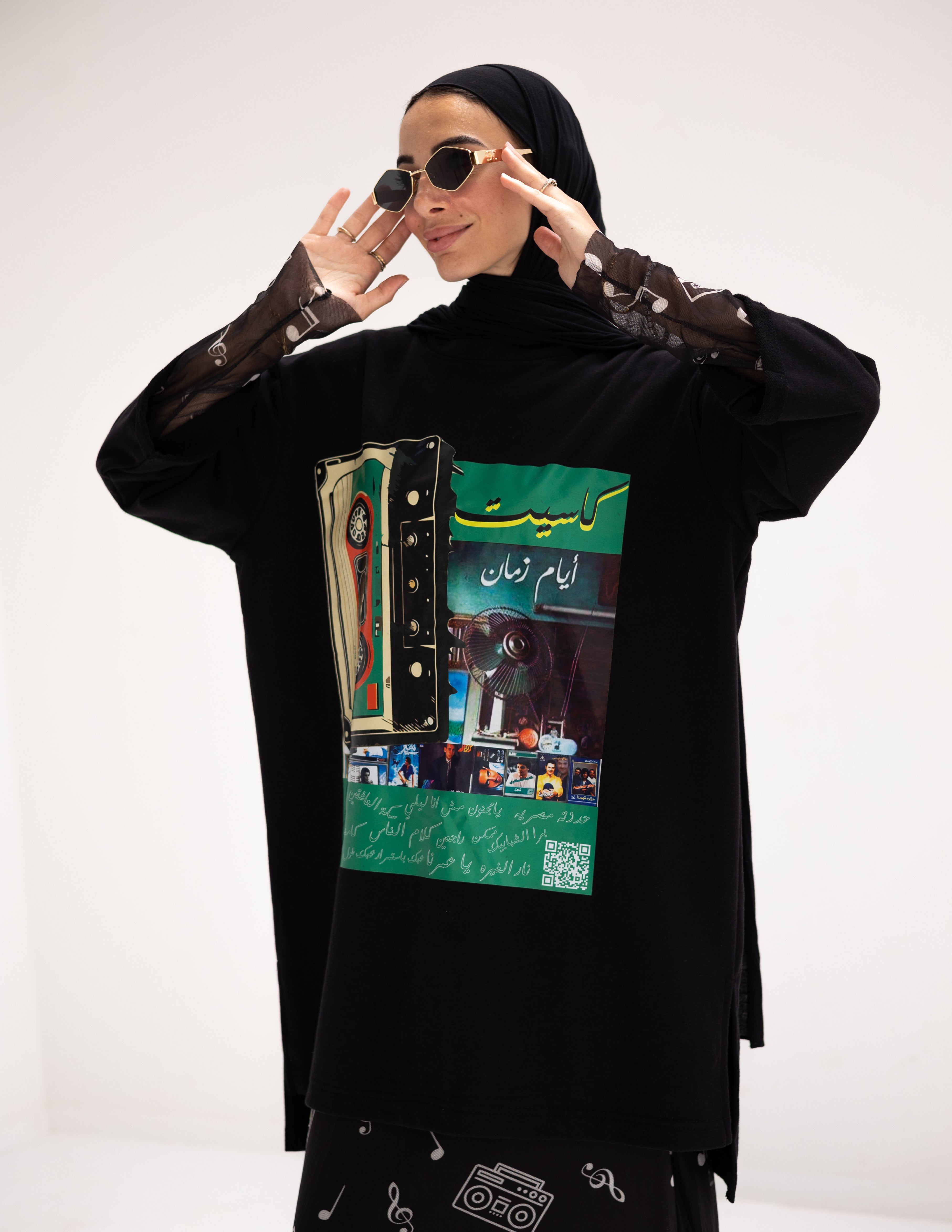 Black Modest Tunic Top with Belt and Wide Sleeves